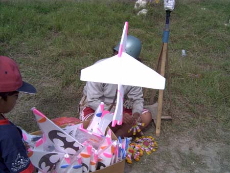 Auch an die Kinder wurde gedacht. Diese Windräder sind aus den überall verfügbaren Wasserflaschen gefertigt und dann bemalt worden. Um Ideen sind die Balinesen nicht verlegen. |
